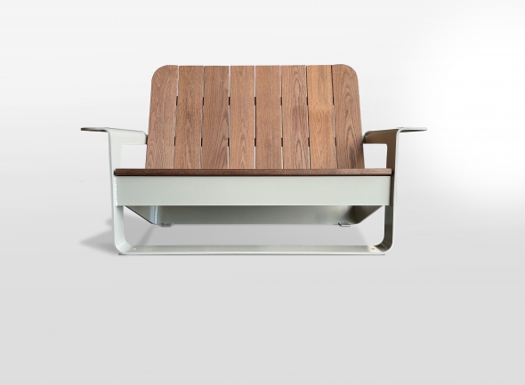 ALUMINUM DOUBLE ADIRONDAK CHAIR, THERMALLY MODIFED RED OAK SEAT/ARMREST