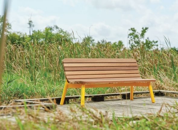 6' STEEL BENCH, THERMALLY MODIFED RED OAK SEAT