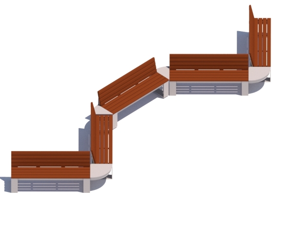 523 and 522 benches with 90 degree 528 connectors (shown with thermally modified red oak lumber)