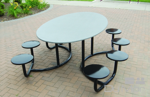 6-SEAT STEEL OVAL TABLE, RECYCLED PLASTIC TOP