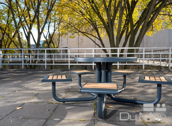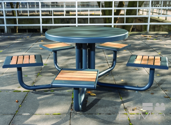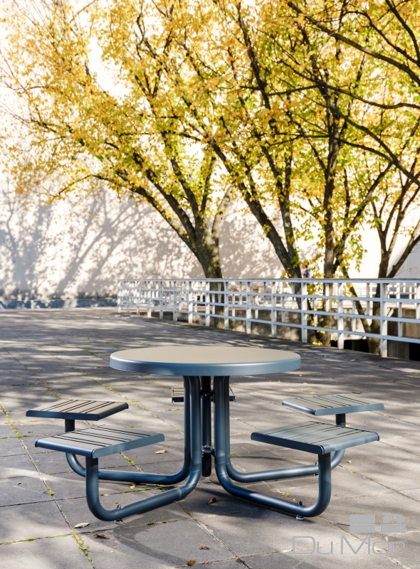 42” DIAMETER ADA STEEL TABLE, 3 BACKLESS SEATS, IPE