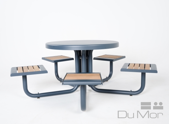 42” DIAMETER ADA STEEL TABLE, 3 BACKLESS SEATS, WOOD GRAIN RECYCLED PLASTIC
