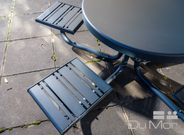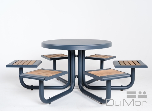 42” DIAMETER STEEL TABLE, 4 BACKLESS SEATS, IPE