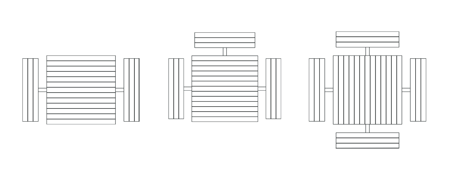 4' SQUARE TABLE, 3 SEATS, 2 X 4 IPE