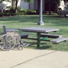 4' SQUARE TABLE, 3 SEATS, 2 X 4 WOOD GRAIN RECYCLED PLASTIC