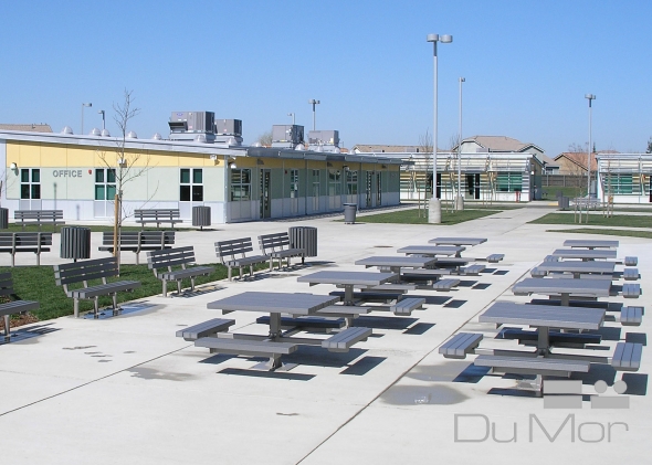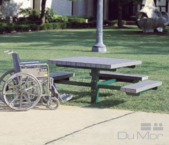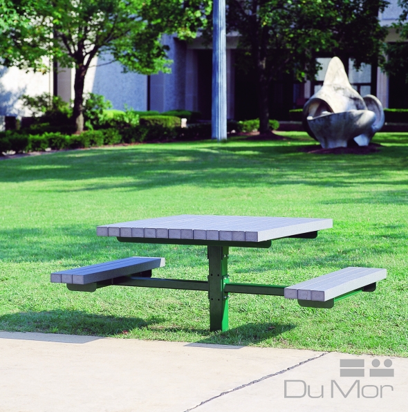 4' SQUARE TABLE, 2 SEATS, 2 X 4 WOOD GRAIN RECYCLED PLASTIC
